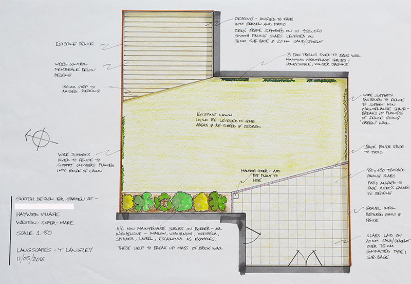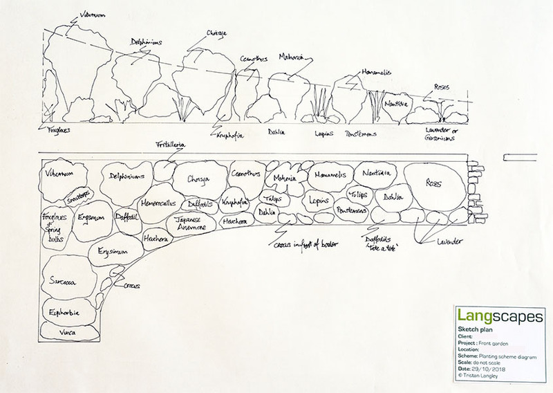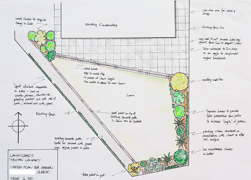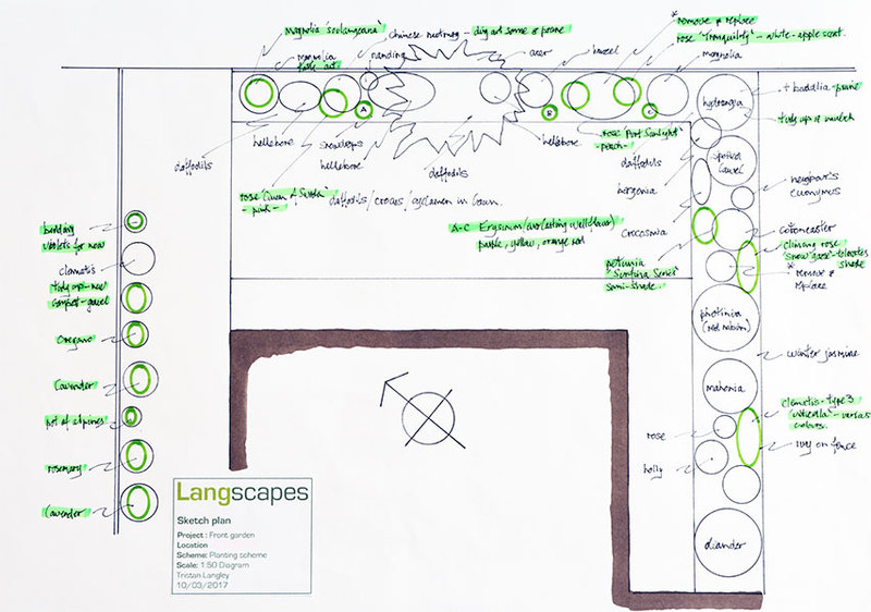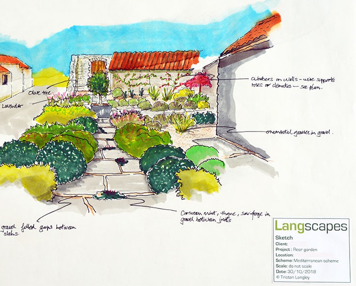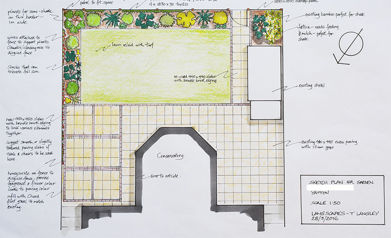 After an initial consultation, Langscapes can produce sketch designs to scale, together with a separate document of proposed planting as a discussion document for you to consider. This would cost £150.00.